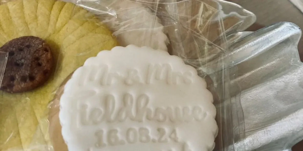 Shauna made and decorated the wedding cake herself as well as the decorated cookies as favours. There was even a crisp wall – a very popular wedding addition in 2024. For wedding furniture, the couple borrowed tables and seating from a local primary school which helped to keep costs down.