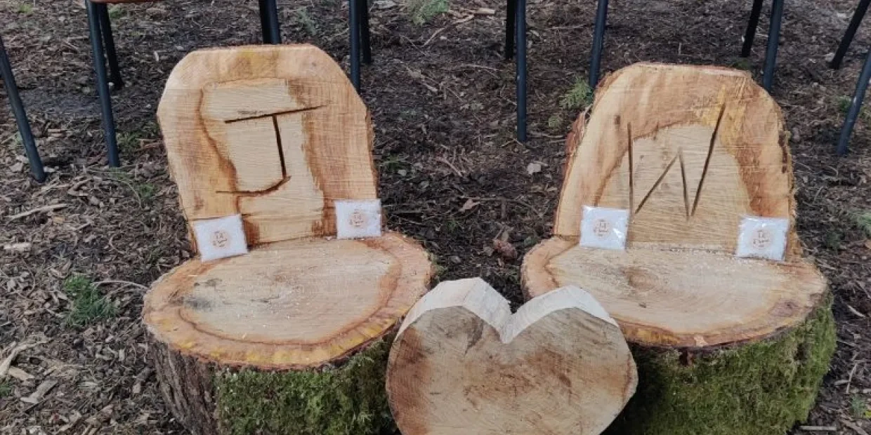 The path down to the ceremony space was lined with greenery blown down by Storm Darragh, jars of candles sat on logs, bundles of fairy lights hung among the trees all topped off by a temporary arbor created by the team. They had even carved seats for Sinead and Mike’s sons – such a thoughtful touch.