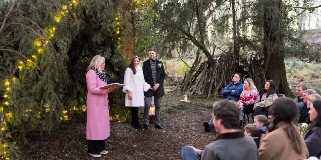 About a week after they had booked the stay, Sinead said to Mike, “What if we get married on Christmas Eve in the forest?”. Mike thought the idea was bonkers. Sinead spoke to her mum. She thought it was bonkers too. Sinead kept elaborating on her vision and eventually, they both came round to the idea.